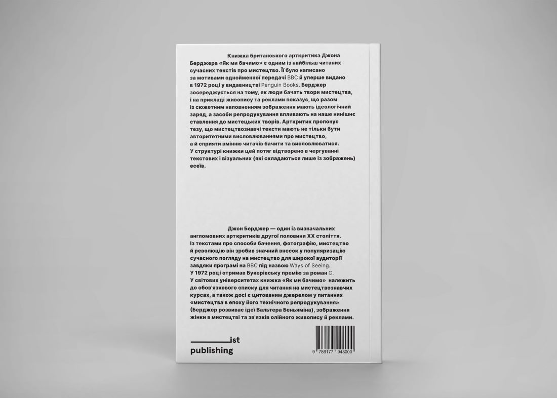 Berger focuses on how people see works of art, and using the examples of painting and advertising, he shows that, along with the plot content, images have an ideological charge, and the means of reproduction influence our current attitude towards works of art.