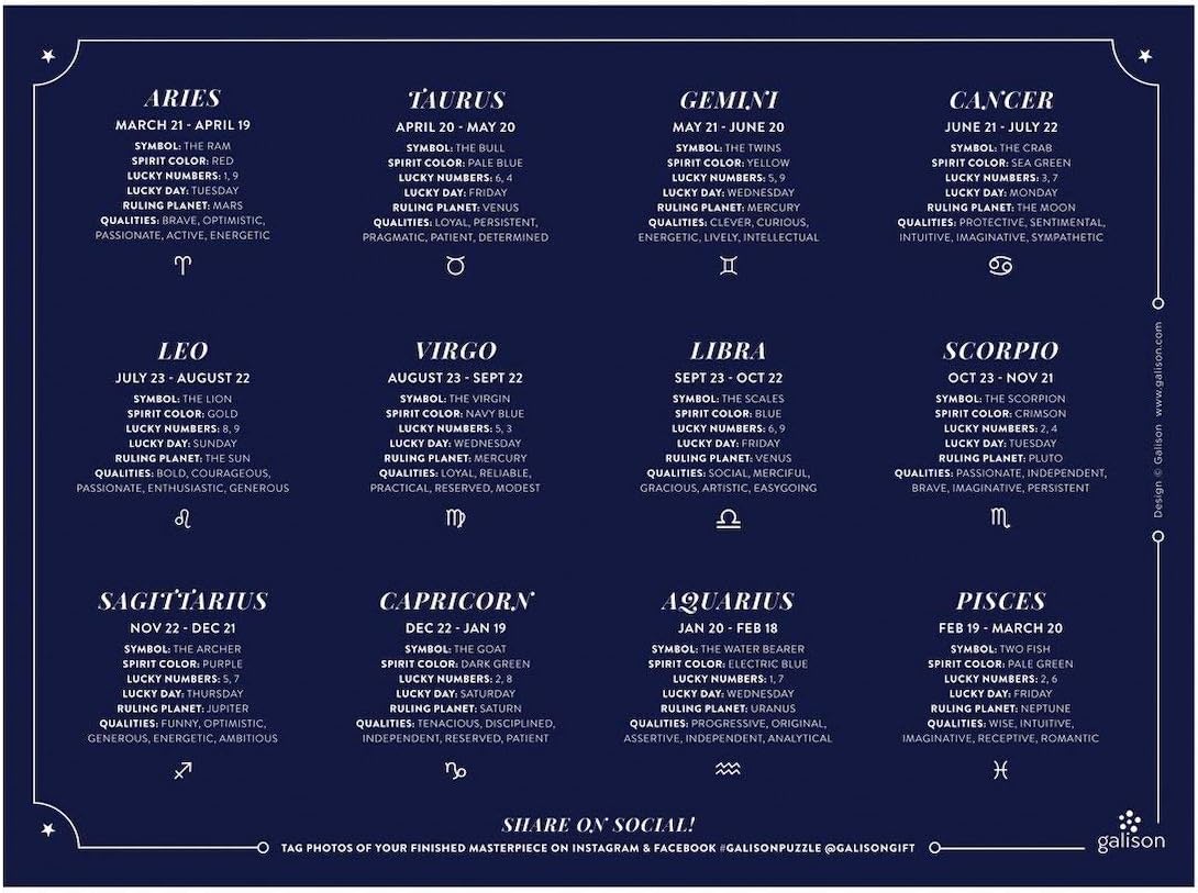 Puzzle insert includes fun astrological facts Astrology 1000 Piece Foil Puzzle includes an insert with interesting astrological facts.
