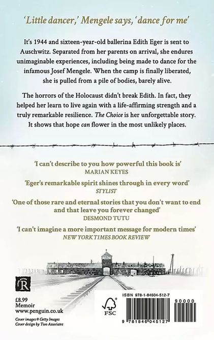 In 1944, sixteen-year-old ballerina Edith Eger was sent to Auschwitz. Separated from her parents on arrival, she endures unimaginable experiences, including being made to dance for the infamous Josef Mengele. When the camp is finally liberated, she is pulled from a pile of bodies, barely alive.