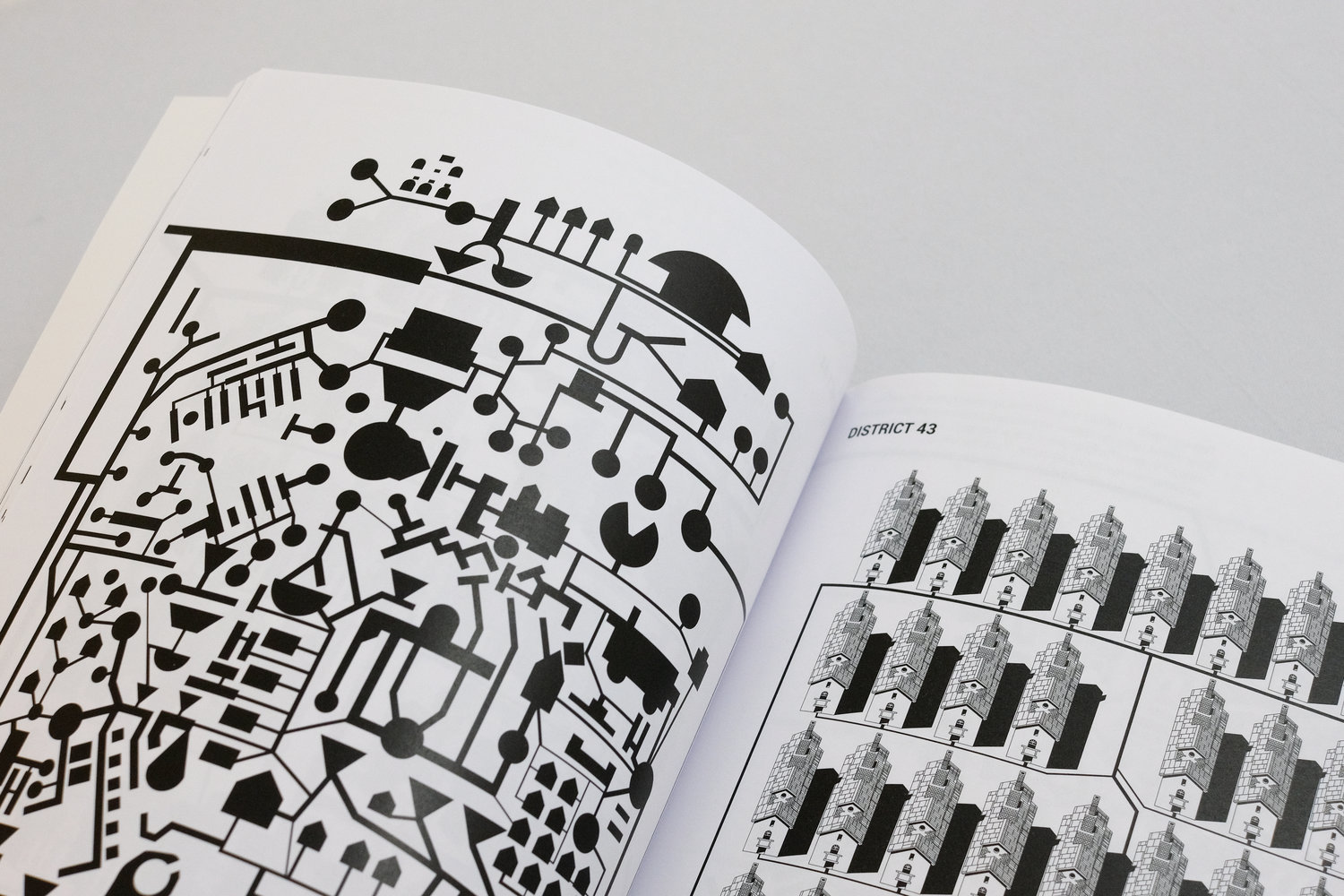 In the book, printed in intaglio, the city districts and drawings from the notebook are converted into vector images, located on different sides of the spread and intertwined with common paths. Finding themselves at a crossroads, the reader finds themselves in a borderland situation, which, according to Makov, actually defines Place — the presence between reality and dream. While only selected pages from Makov’s personal notebook were included in the book, the insert with a map of the fictional city of Do Po became an integral part of the author’s book of the same name.